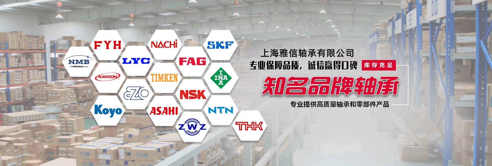 經營品牌有:HRB軸承、SKF軸承、NSK軸承、FAG軸承、NTN軸承、IKO軸承、INA軸承、THK軸承、NACHI軸承等知名品牌
